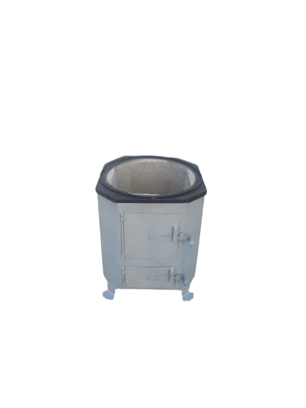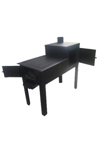 Soba de gatit confectionata in totalitate din tabla model cizma cu iesirea pentru evacuare fum pe stanga.